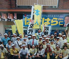 卒業後はサラリーマンを経て、中小企業の経営もしました。そんな時、理不尽に思う事があり、人に頼るのではなく、自分が立ち上がり、私と同じような想いの方々の為に働こうと政治の道を志ました。2005年初めての立候補、落選しましたが、その後の当選、また今日に至るまで、言葉に尽くせない多くの皆さんの支えで政治活動を続けてまいりました。